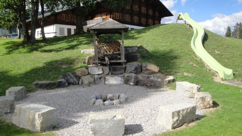 Das grosse Aussengelände umfasst alles von Fussballfeldern bis hin zu einer Seilbahn und einem Spielhaus mit Seilbrücke, was es zu einem Paradies für Kinder und Erwachsene gleichermassen macht. Der Brätliplatz lädt zu gemütlichen Grillabenden ein, während du die Natur in vollen Zügen geniessen kannst.