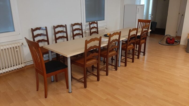 Einige Zimmer sind mit einem Tisch und Stühlen ausgestattet, die auch für gemeinsame Aktivitäten genutzt werden können.
