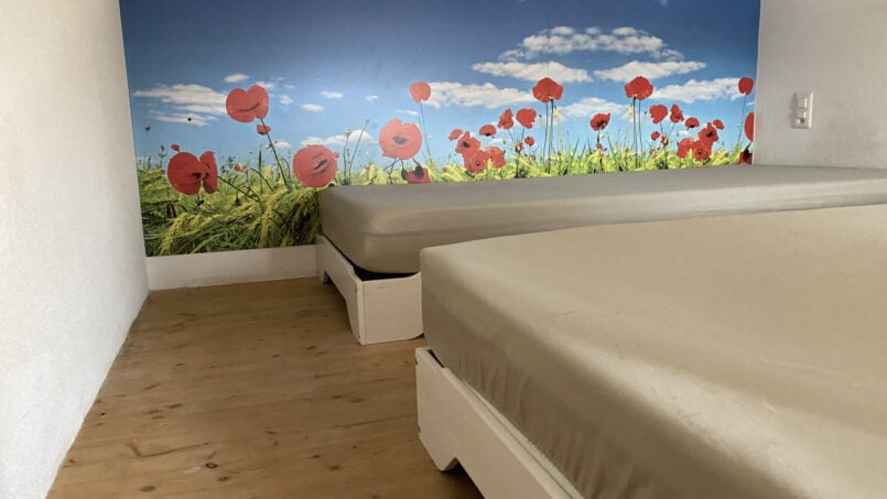 Du findest hier verschiedene Zimmerkategorien, vom Einzelzimmer bis zum grossen Loft mit 12 Betten. Familien, Freunde, Vereine oder Projektgruppen profitieren von einer durchmischten Auswahl. Das Studio und das Loft verfügen über ein eigenes Badezimmer und eine Küchenzeile – perfekt, wenn du Wert auf Privatsphäre legst. Die übrigen Zimmer teilen sich ein sauberes Gemeinschaftsbad.