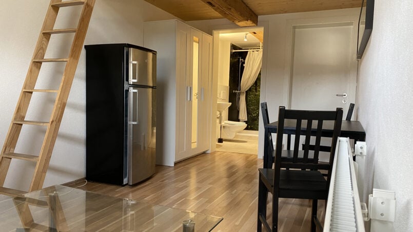 Die Lage überzeugt durch ihre Nähe zur Stadt und zum Flughafen. Nur zwei Gehminuten entfernt liegt die Bushaltestelle Mösli Hofstetten. Von dort gelangst du schnell zum Bahnhof Oberglatt. In etwa 20 Minuten erreichst du den Flughafen Zürich oder den Zürcher Hauptbahnhof. Wenn du mit dem Auto anreist, findest du kostenpflichtige Parkplätze direkt beim Haus oder kostenlose in der Nähe.